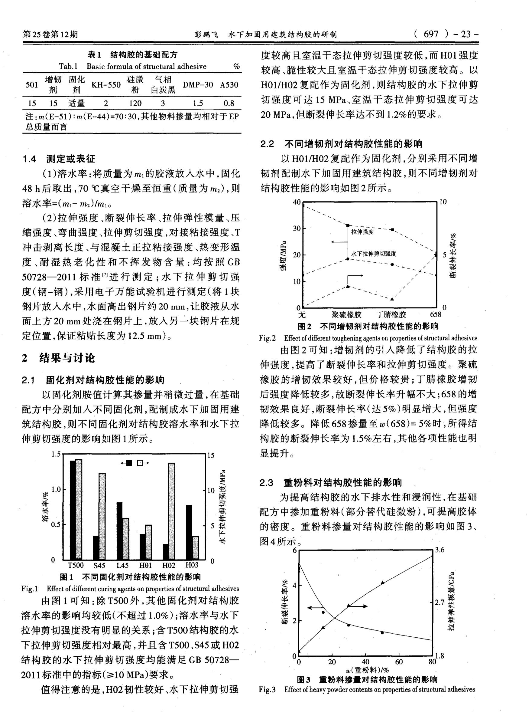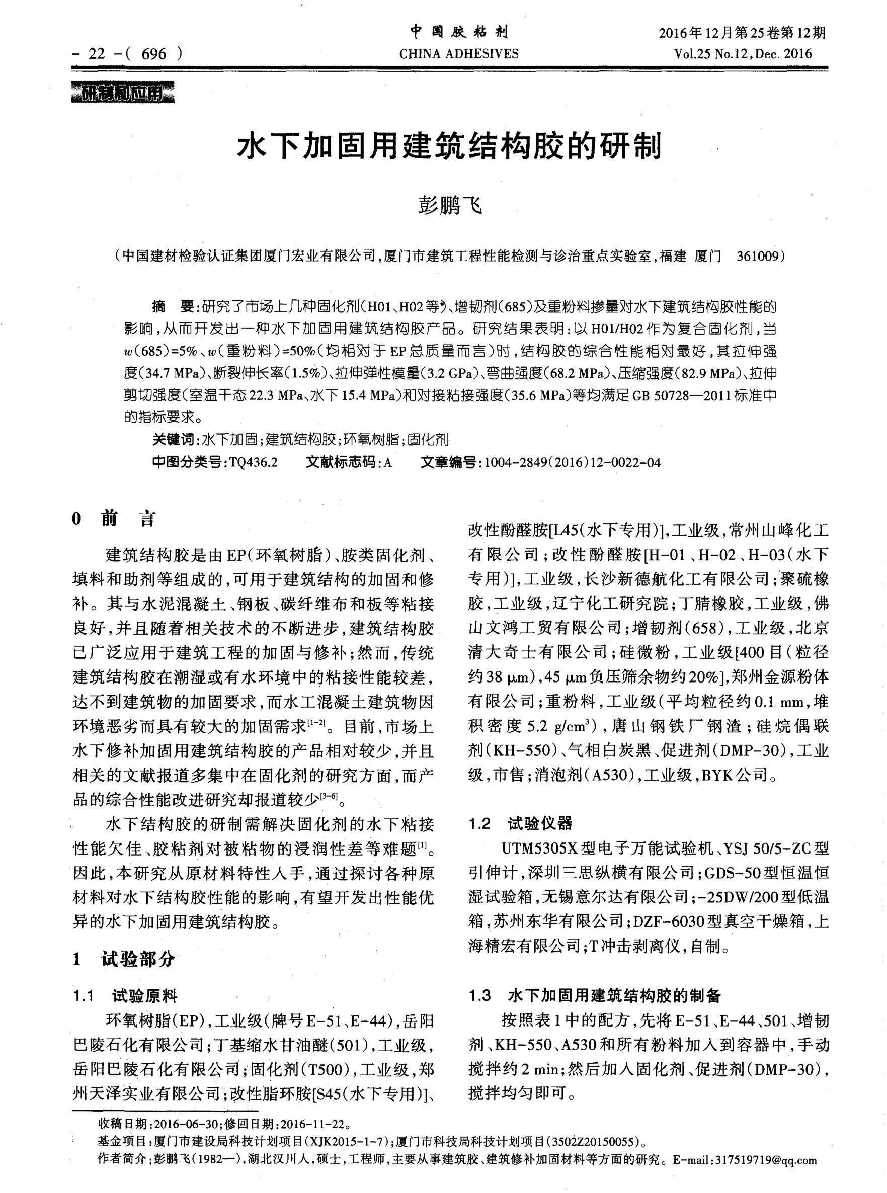 水下加固用建筑結(jié)構(gòu)膠的研制